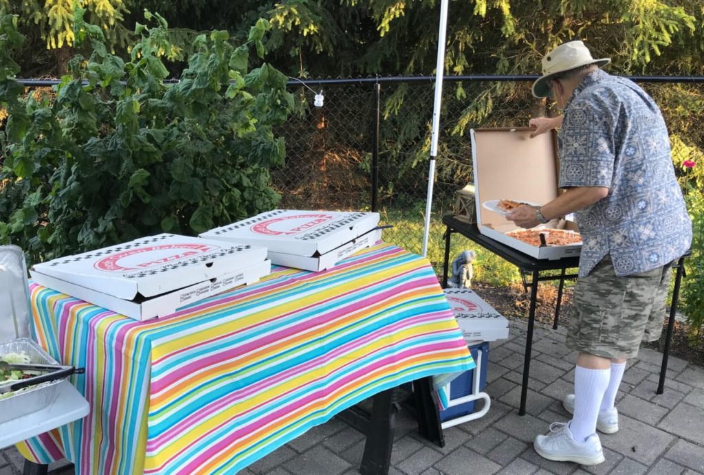 Sixteen SRC members and friends gathered under sunny skies on Thursday for an outdoor pizza party that completed our abbreviated “Summer Casual Events” calendar.