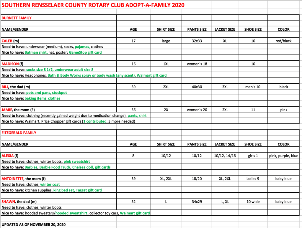 Please remember all gifts have to be gift-wrapped and labeled with the name of the recipient. In the case of gift cards, please place them in a sealed envelope with the name of the recipient family written on the outside.