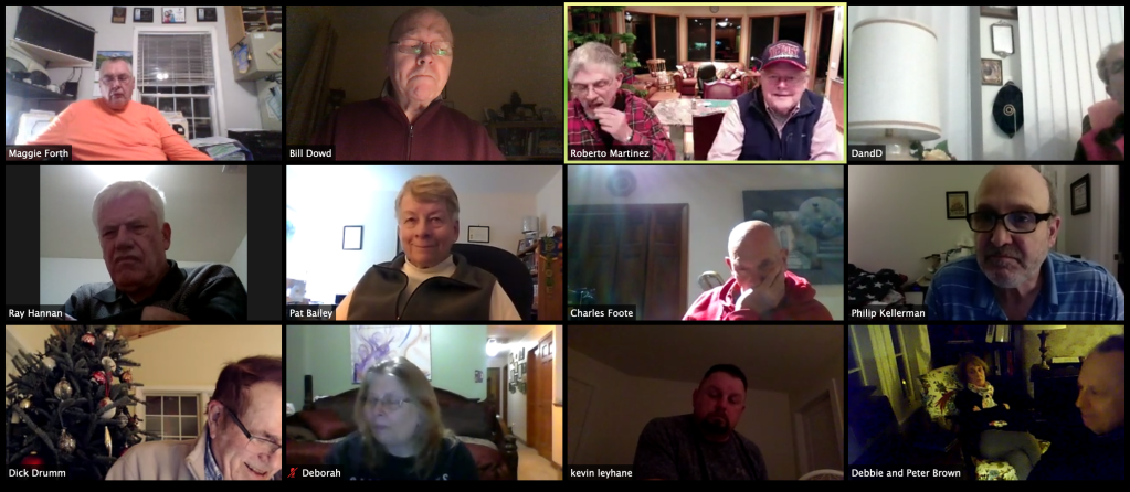 The next meeting is scheduled for 7 p.m. Thursday, January 14, via ZOOM. Bill will send out the invitation link over the weekend plus a day-of reminder.
