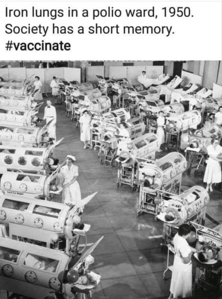 This archival photograph shows an all-too-typical hospital scene in the days beforw a successful polio vaccine was developed.