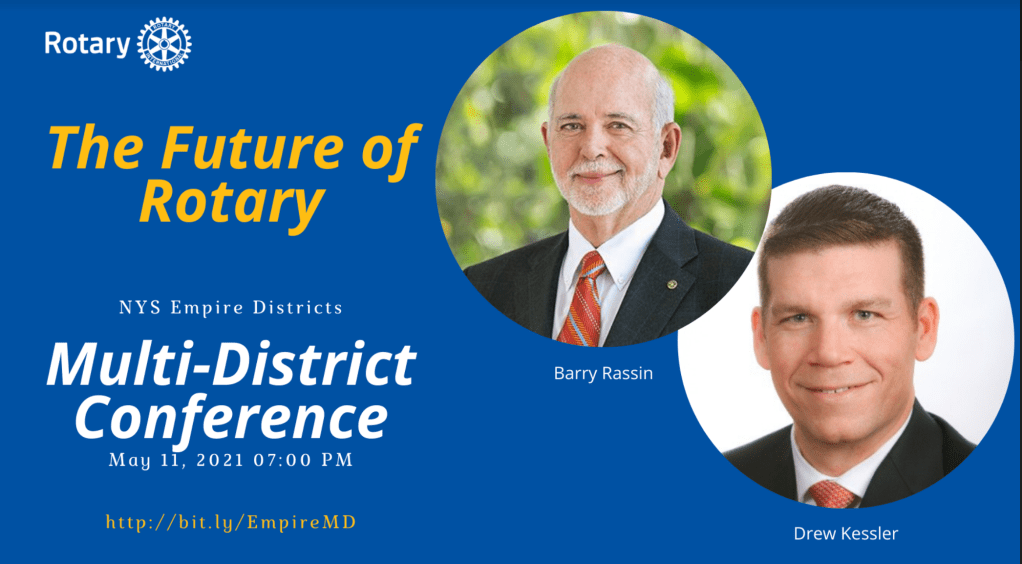 The 7 p.m. session is open to all Rotarians in District 7190 as well as Districts 7120, 7150, and 7170, although advance registration is required. Rassin will be speaking on new changes in Rotary that affect us all. Attendees also will hear from RI Director-elect Drew Kessler on changes being proposed for our Zone 5.