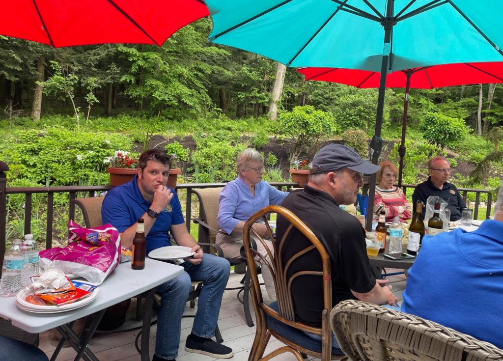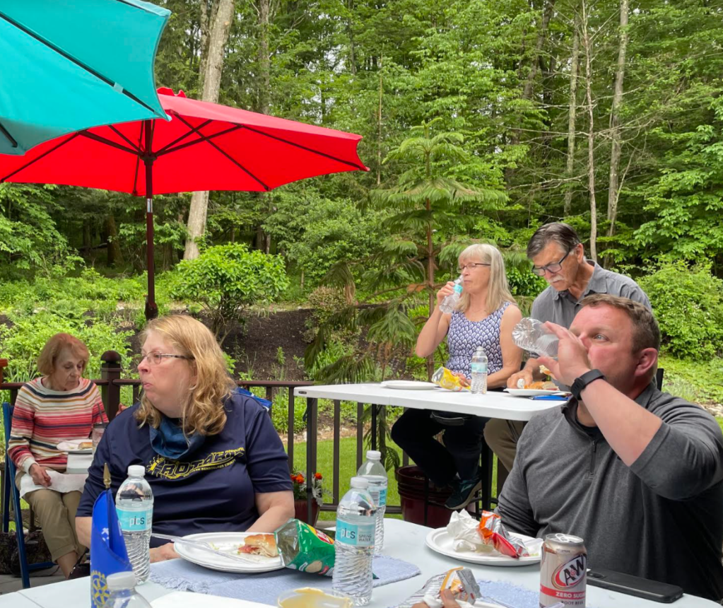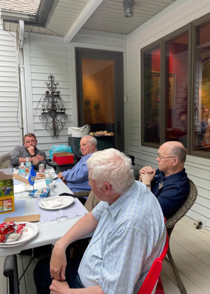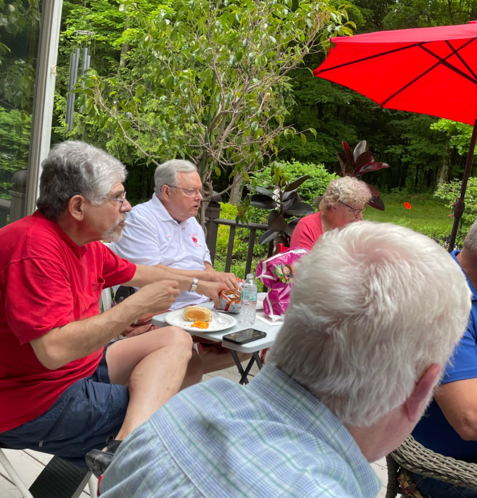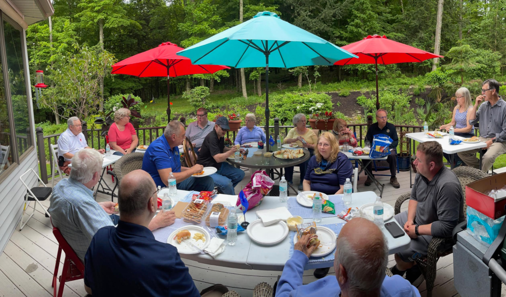 This was our first in-person meeting since March 12, 2020, because of the COVID-19 pandemic. Thanks to Roberto Martinez and Jim Leyhane co-hosting the meeting at Roberto’s residence. Despite overcast skies, the group enjoyed a picnic dinner on the deck and some long-anticipated reacquainting with each other.