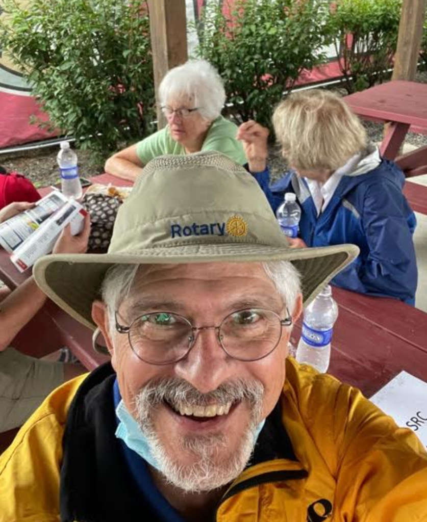 A group of Rotarians, friends, and family, enjoyed menu of hot dogs, pulled pork, chicken, macaroni salad, etc.