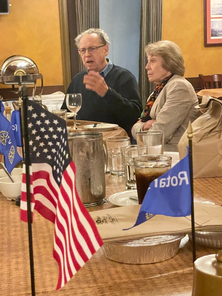 • Two donations were re-proposed and approved, a carryover business item from last week when we did not have a quorum: $150 to the USS Slater, the destroyer escort floating museum docked in Albany, in memory of our late member Bill Wyld, who was a longtime member of the U.S. Navy and volunteer for veterans’ activities; $100 to the District in lieu of a gift basket for the upcoming Rotary Foundation Dinner.