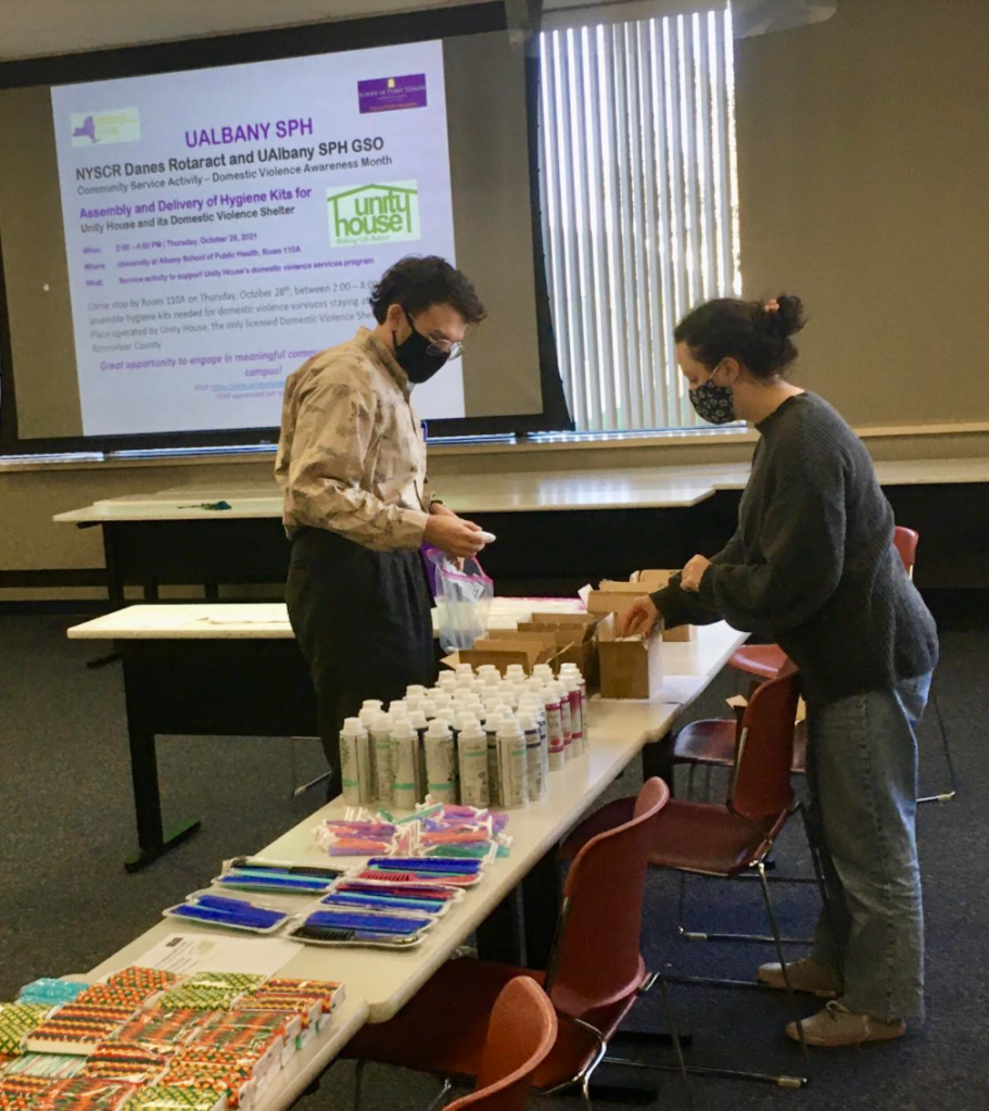 • Debbie R. reported that a hygiene kit assembling session by the NYSCR Danes Rotaract that we sponsor and the Graduate Student Organization at UAlbany drew a sizeable crowd of students from across the spectrum at the school, with Debbie and Becky Raymond representing SRC. The event was designed as a service event and a Rotaract recruiting effort.