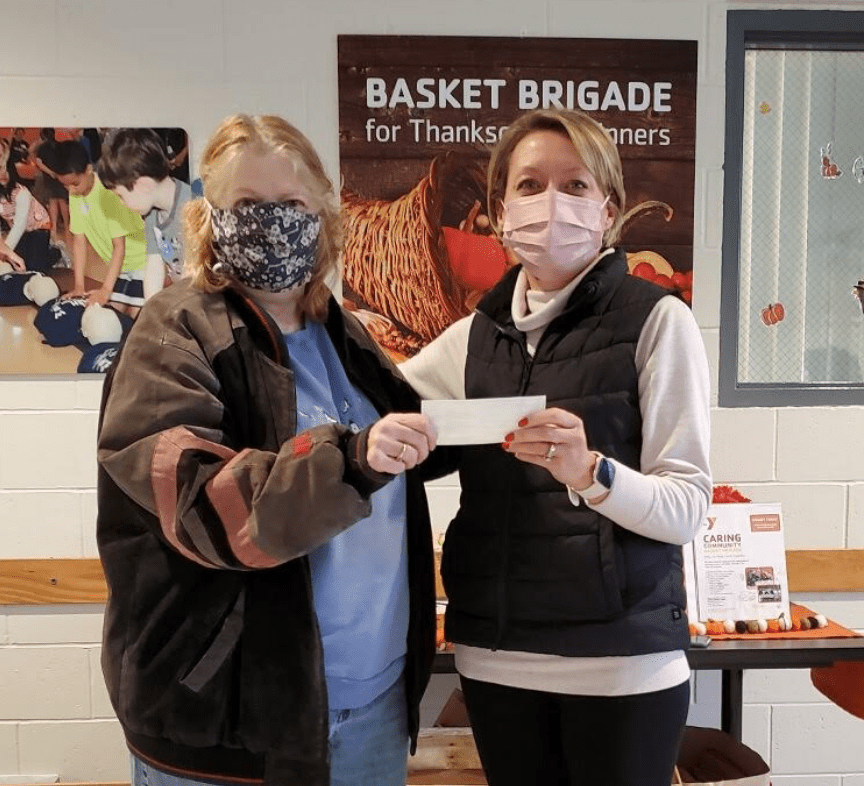 SRC President Debbie Rodriguez (left) presents a club check for $250 to SRC member Shannon Romanowski, director of the Greenbush YMCA, to help support the Y’s annual “Community Basket Brigade” for Thanksgiving.