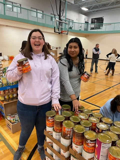 Dane Rotaract officers, Monica Barrera and Meghan Lippa, together with Becky Raymond, joined YMCA Executive Director, Shannon Romanowski and the volunteers at the Greenbush YMCA to set up the stations for the Basket Brigade. The Brigade assembly was held Saturday the 19th, resulting in 450 “baskets” of Thanksgiving dinner for families in Rensselaer and Warren counties.