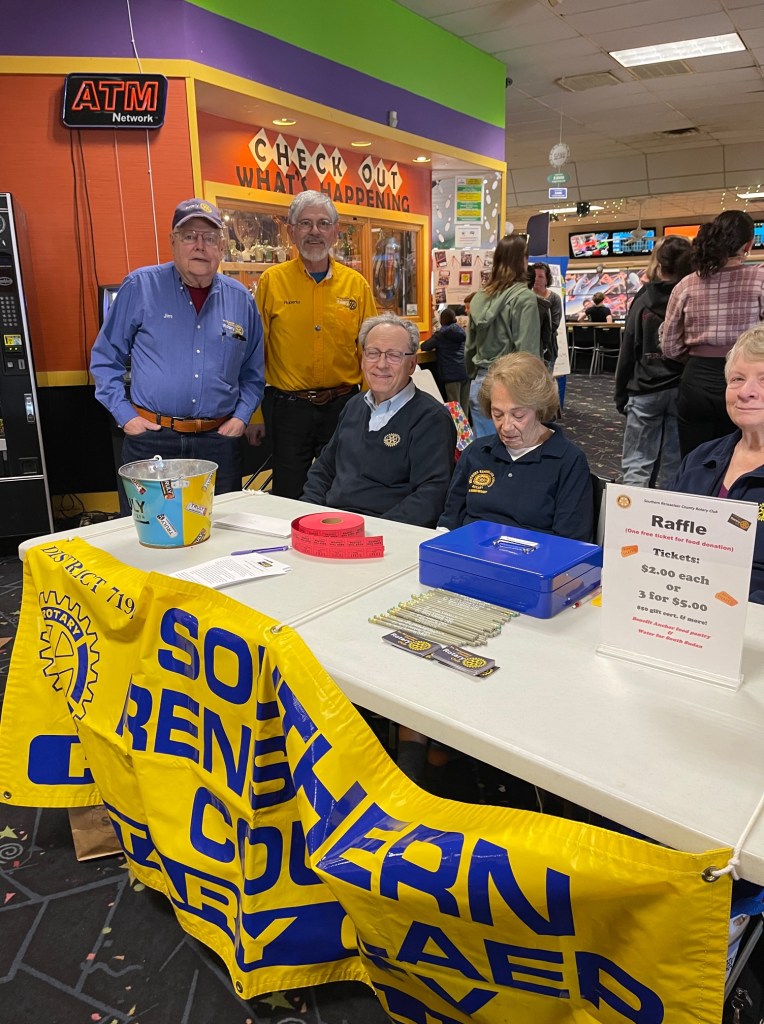 This past Saturday, members from the Southern Rensselaer County Rotary Club along with Administrators, teachers, and students from the Schodack Central School District gathered at the East Greenbush Bowling Center to raise funds for two worthy causes. Money raised from the event was split between The Anchor Food Pantry and Maple Hill’s Water for the South Sudan fundraising project. Non-perishable food items were also collected for the pantry.