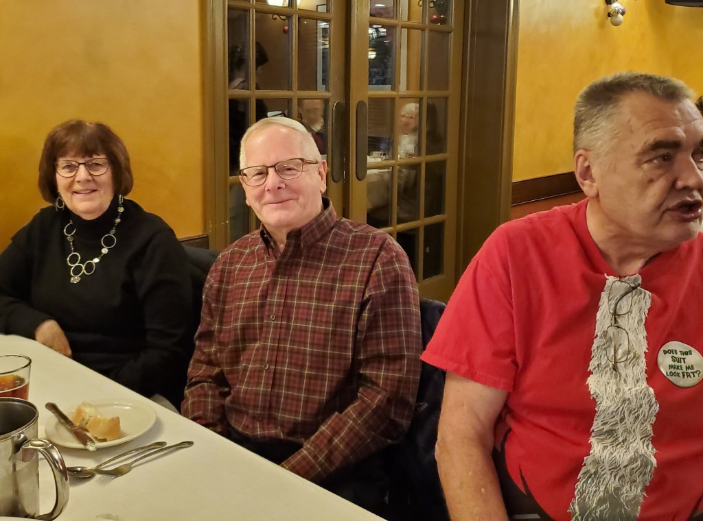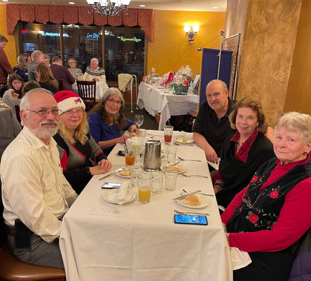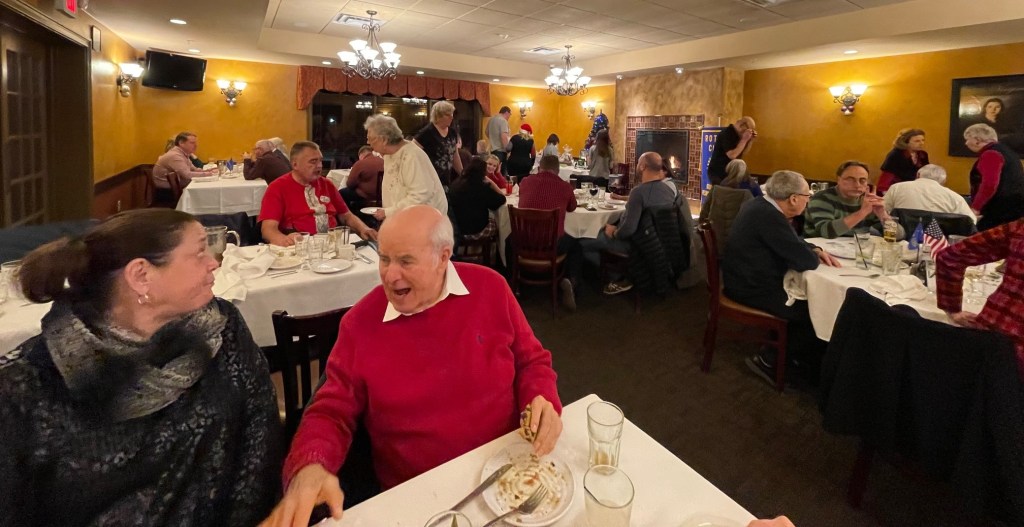 The Holiday Party & Basket Silent Auction took place this evening at Moscatiello’s Italian Family Restaurant. Thank you to Phil Kellerman who organized the fundraiser and to everyone who contributed and bid on the baskets. We raised more than $600. Special thanks to Roberto Martinez and Jim Leyhane for arranging the dinner.