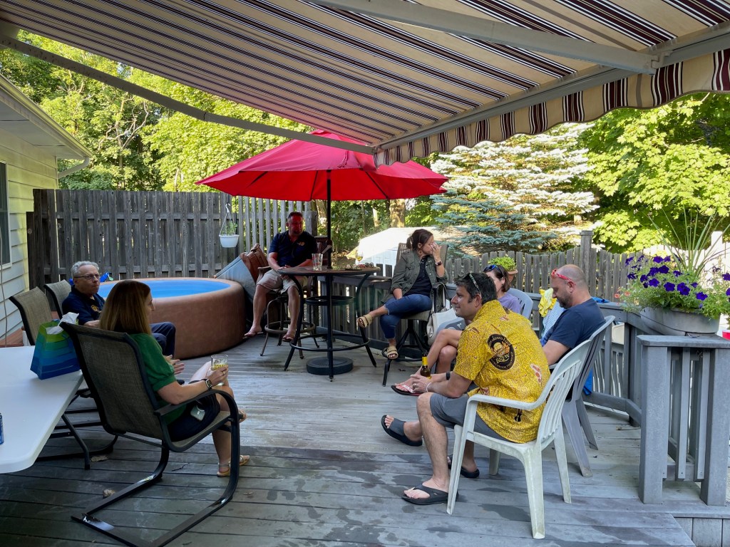 Last night the Southern Rensselaer County Rotary Club met for its weekly summer casual event. The event, hosted by Jim Leyhane and Roberto Martinez, featured filet mignon, baked potatoes, cowboy beans, and Italian bread in a poolside atmosphere. The evening which was enjoyed by all included many laughs as we all engaged in the fellowship of Rotary.