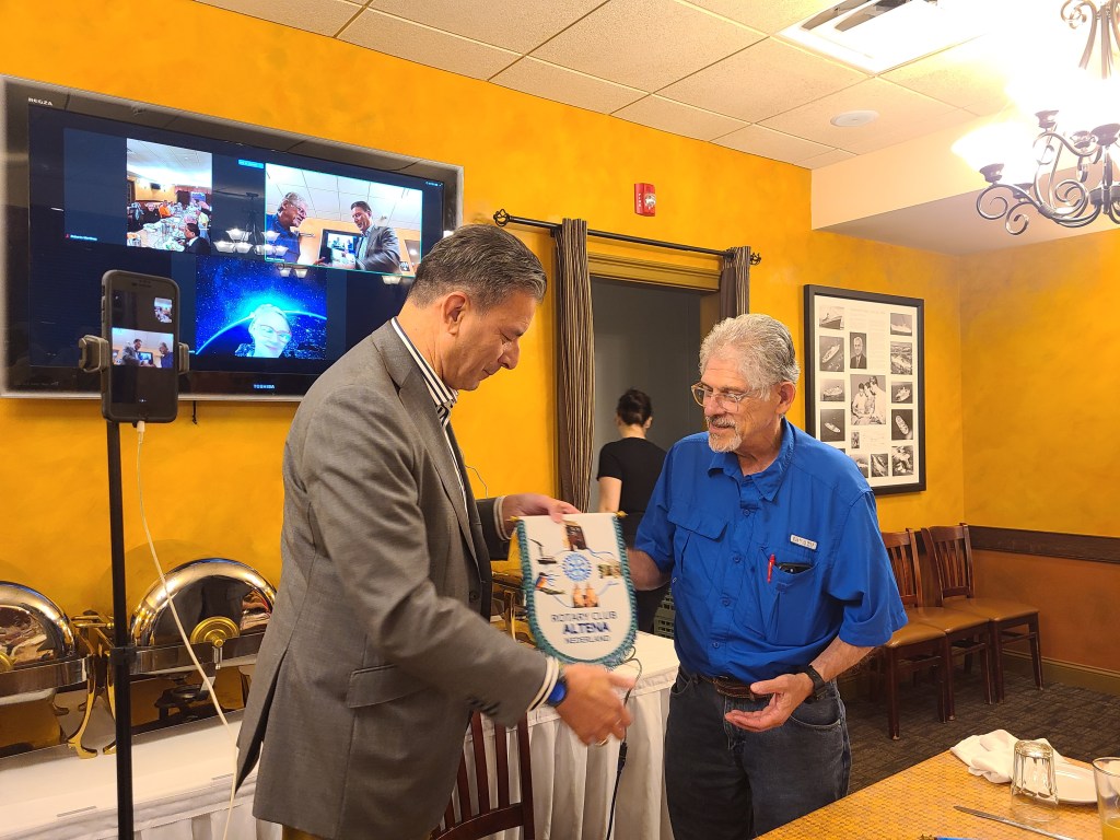 They presented Roberto Martinez with their Rotary Club banners.