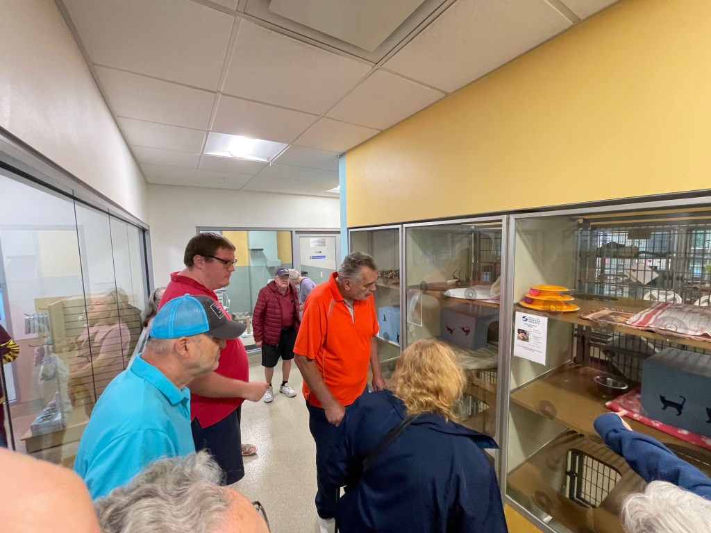 On Thursday July 31st a large group of our members including two additional guests and Colin Tidingen, potential new member, joyed a great 90-minute tour of the Mohawk-Q Hu mane Society in Menands. Lead by director Marguerite Pearson, the group learned much about how the agency takes in cats and dogs, cares for them, provides medical services, and finds homes for many of them. Members also brought donated dry pet food for their pet pantry. It was a very enjoyable and educational experience.