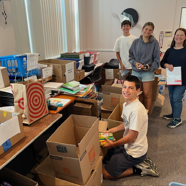 On August 18, volunteers (see below) at Circles of Mercy organized a large amount of donated school school supplies for needy 9-12th graders in the city of Rensselaer. I want to thank those club members who donated so graciously. Please contact me if you have school supplies you wish to donate.