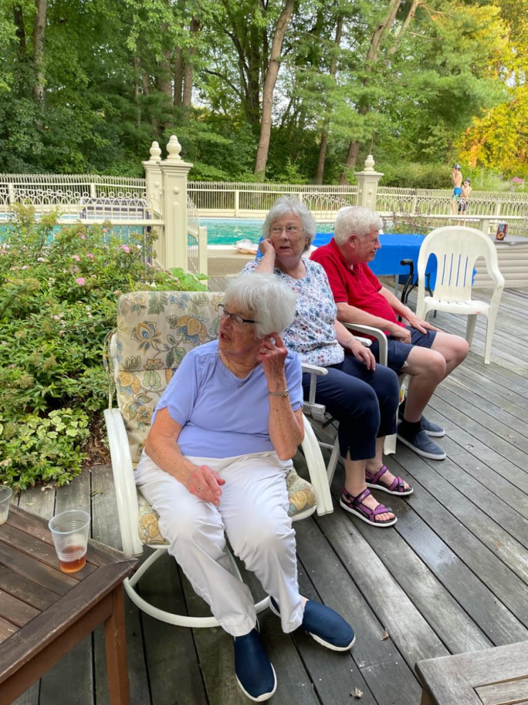 Debbie and Peter Brown graciously hosted a patio dinner of appetizers, chicken, cole slaw, potatoes, salad, desserts and beverages. Plus, the pool was open and freshly stocked with kids.