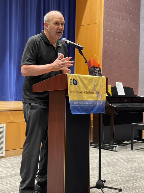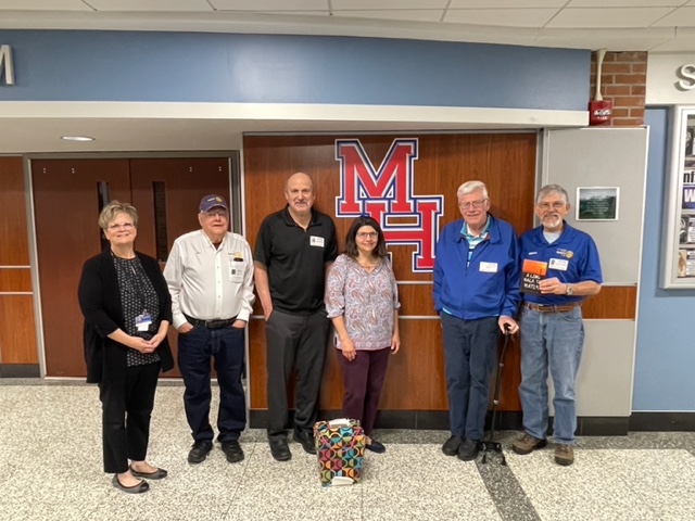 Today, Phil Kellerman presented a check for $544 to the students of Maple Hill Junior/Senior High School for their Iron Giraffe Project to raise money for water for South Sudan. SRC The $544 was raised at the recent Rotary bowling event. This was in addition to the Clubs previous donation of $500 which was mailed and apparently never was received. A replacement check will be submitted to the school. Ray Hannan, Jim Leyhane and Roberto Martinez were also present. Jim promoted the Student Exchange Program. Per Roberto, it was “exciting to see the students so charged up.”